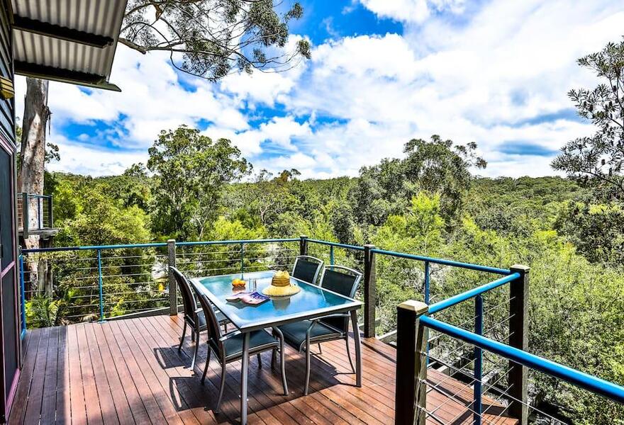 Une collection de dix maisons modernes dans les arbres et une maison de trois chambres entourées par les forêts tropicales luxuriantes du Mont Tamborine. Les intérieurs présentent de hauts plafonds, des fenêtres en verre allant du sol au plafond, des planchers en bois poli et des salons avec kitchenette. Le restaurant est fantastique et de nombreuses activités vous attendent.