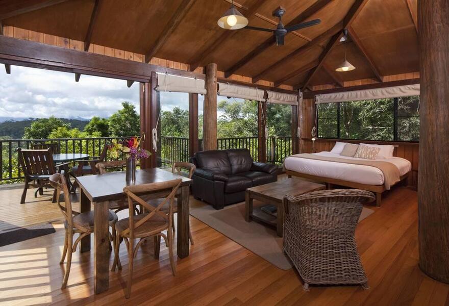 Lodge écologique de luxe sur les rives de la rivière Mossman. Hébergement dans de superbes cabanes dans les arbres, des suites et une maison sur la rivière. Intérieurs élégants avec parquet, somptueuses salles de bains et vérandas donnant sur la forêt tropicale. Cuisine délicieuse au restaurant Treehouse et spa Healing Waters pour se détendre.