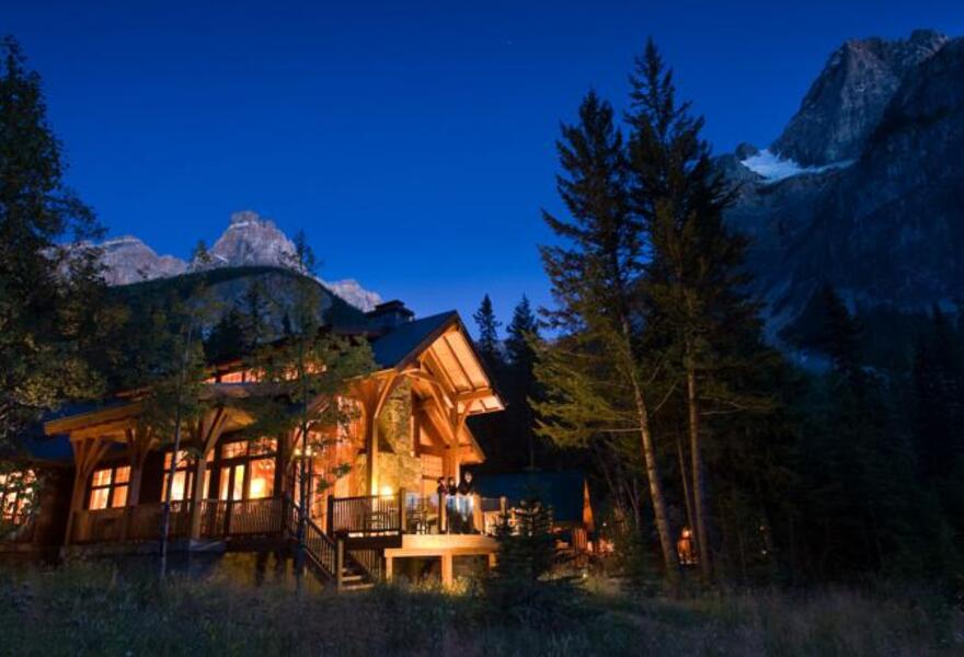 Un lodge de luxe sur la rivière Kicking Horse, dans le parc national de Yoho. Ces cabanes rustiques et chics sont décorées avec amour avec des antiquités locales, des lits en bois et des cheminées. Des porches privés permettent aux clients de s'imprégner de la majesté des parcs préservés. Un refuge parfait pour échapper à la vie moderne.