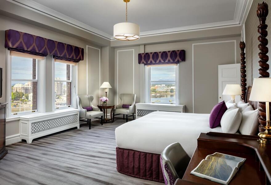 Ce grand hôtel se trouve à quelques minutes de marche du port intérieur de Victoria. Les suites sophistiquées sont dotées d'un mobilier traditionnel en bois foncé, de tapis audacieux et de fenêtres allant du sol au plafond. Le spa propose des soins luxueux et biologiques. L'hôtel est idéalement situé pour explorer la ville à pied, à vélo ou en kayak.