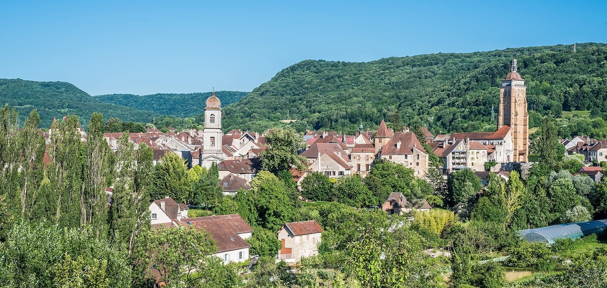 Si vous recherchez des sites historiques, des musées et d'excellents restaurants, installez-vous près de Lons-le-Saunier ou de Poligny, deux petites villes attrayantes aux toits de tuiles rouges et aux vues sur les montagnes. La station thermale de Salins-les-Bains est idéale pour se détendre, tandis que Dole regorge d'art et d'histoire, et le magnifique village médiéval de Baume-les-Messieurs - qui abrite l'abbaye de Saint-Pierre - est un tremplin bien placé pour s'émerveiller devant les impressionnantes chutes d'eau de la Reculée de Baume.