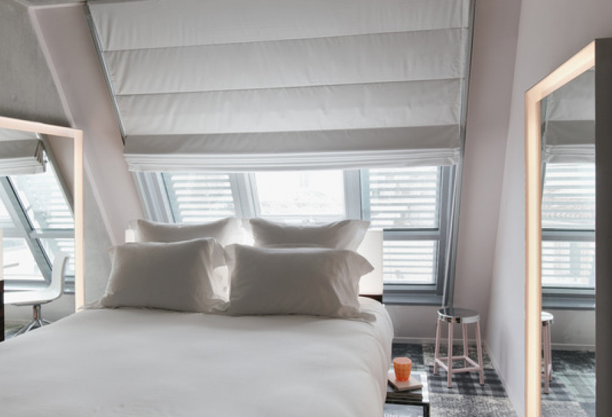 Cet hôtel de luxe se trouve directement sur le front de mer de la plage des Catalans à Marseille. Toutes les chambres offrent des vues sur la mer et disposent d'une terrasse privée, agrémentée de rideaux azur et de linge de maison blanc impeccable. Profitez de la piscine sur le toit avant de dîner dans l'élégant restaurant de fruits de mer, idéal pour une escapade romantique.