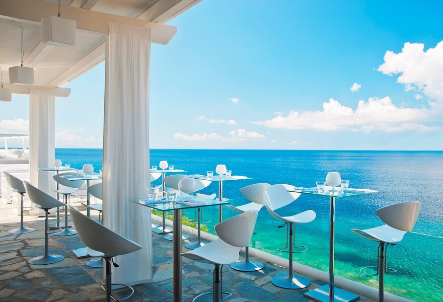 Ce luxueux complexe balnéaire présente une architecture cycladique contemporaine à la décoration bleue et blanche. Les chambres et les suites sont spacieuses et certaines disposent d'une terrasse privée et d'une piscine à débordement. Le spa en bord de mer, la plage de sable privée et le bar au bord de la piscine garantissent un hôtel sophistiqué et relaxant.