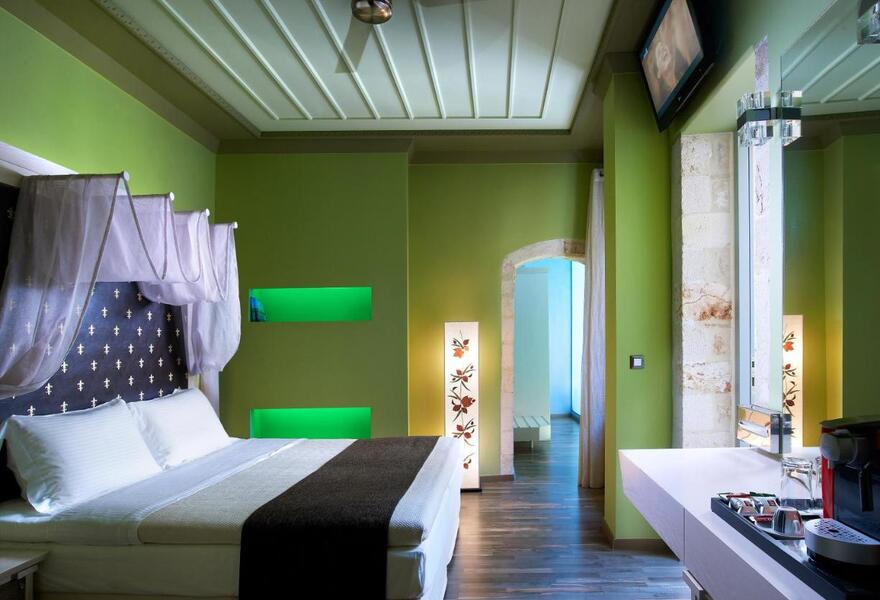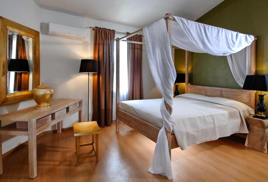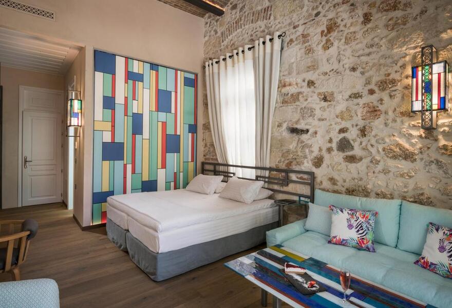L'hôtel est situé dans un manoir du XIXe siècle, plein de caractère et de charme authentique. Les chambres sont dotées de murs en pierres apparentes, de lits à baldaquin et de balcons donnant sur la rue piétonne en contrebas. À seulement quatre minutes du port vénitien, vous trouverez de nombreux restaurants de bord de mer à proximité.