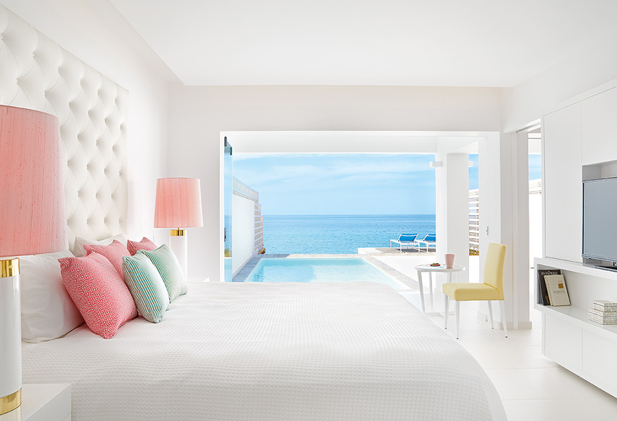 Un palais digne du légendaire roi Minos lui-même. Les villas disposent de piscines privées, d'un décor blanc sur blanc et d'immenses baies vitrées. Il y a un choix de neuf restaurants et bars à la cuisine décontractée ou raffinée, ainsi que de nombreuses activités pour les couples et les familles. Une escapade gâtée.