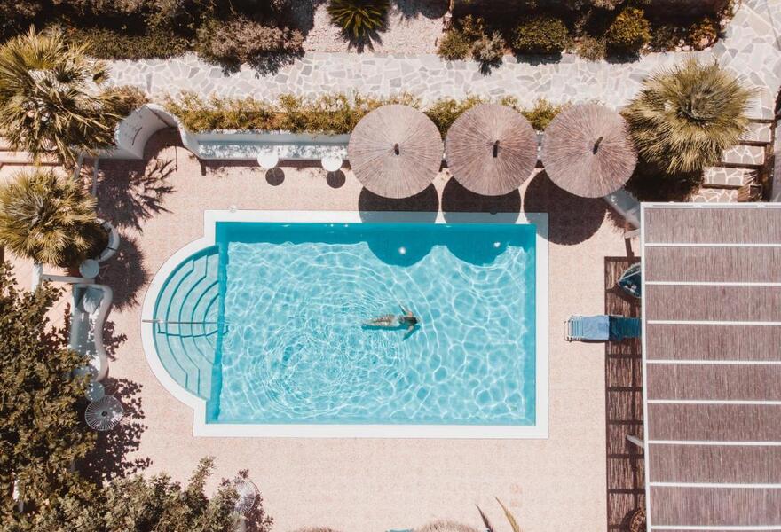 Ce petit hôtel, géré par son propriétaire et composé uniquement de suites, est niché au sommet d'une jolie colline. Chaque suite est décorée de façon individuelle, mais toutes présentent la palette traditionnelle de couleurs blanc et bleu, des kitchenettes et de belles vues. Un café au bord de la piscine sert des plats régionaux décontractés. Un séjour réservé aux adultes, idéal pour une escapade tranquille.