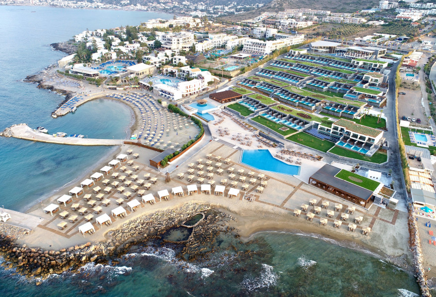 Station balnéaire de luxe située à quelques minutes d'Agios Nikolaos. Les somptueuses suites et villas présentent des intérieurs contemporains et de fabuleuses vues sur la mer, et beaucoup disposent d'une piscine privée. Plage de sable privée et installations fantastiques pour toute la famille, notamment un spa de luxe et un club pour enfants.
