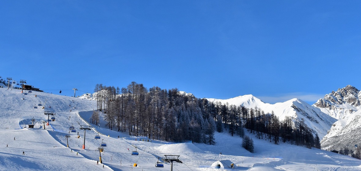 Livigno se composait à l'origine de trois hameaux, San Antonio, San Rocco et Santa Maria, mais ils ont fusionné le long de la vallée pour former un long et fin village de villégiature. Les logements de Livigno sont répartis dans tous les hameaux d'origine. Vous y trouverez également un petit nombre de boutiques, de cafés, de bars et de restaurants. Les remontées mécaniques se trouvent aux deux extrémités, et bien qu'il y ait une navette de ski gratuite, elle se termine en début de soirée, c'est pourquoi nous avons donné la priorité aux hôtels proches des remontées mécaniques et des téléphériques. Les principales écoles de ski et les pistes pour débutants se trouvent dans la partie centrale, à San Antonio, et d'autres pistes pour débutants se trouvent à l'extrémité sud, à San Rocco et dans le domaine skiable de Carosello. Livigno dispose également de quelques longues pistes et d'un snowpark. C'est également une bonne station pour le ski de fond.