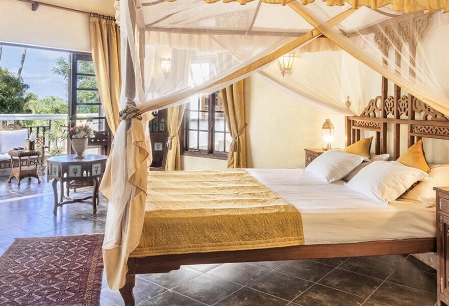 Msambweni House And Private Villas, situé sur de magnifiques sables blancs, offre un hébergement élégant avec des lits à baldaquin et une grande piscine. De plus, vous pouvez demander à leurs chefs privés de cuisiner tout ce que vous désirez !