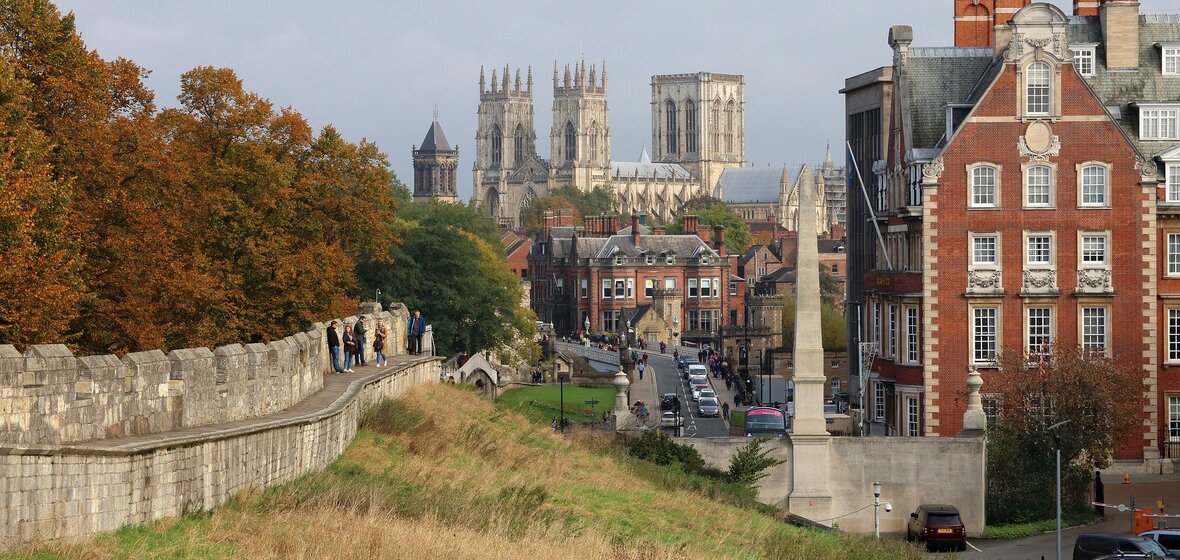 York est facilement accessible par avion, avec des vols internationaux et nationaux réguliers atterrissant à l'aéroport de Leeds Bradford. Montez à bord d'un bus ou d'un train jusqu'à York (environ 1 heure).