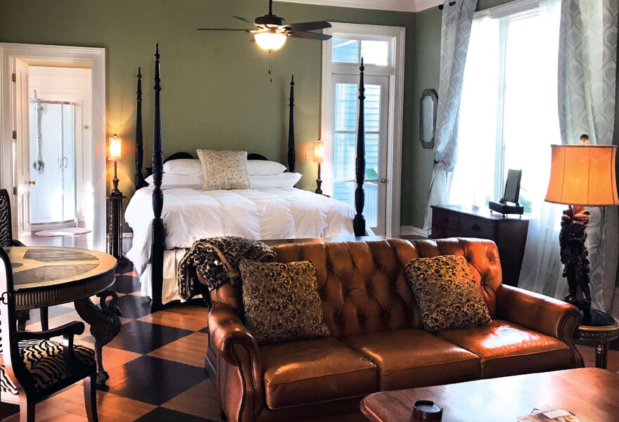 Manoir antebellum du XIXe siècle, à la fois chic et fantastique. Entouré d'un parc pittoresque de 6 hectares, l'hôtel propose des chambres opulentes avec des lustres et de jolies combinaisons de couleurs. Les lits à baldaquin antiques sont sensationnels, tout comme le papier peint et le porche historique. Faites l'expérience du passé avec le confort moderne.