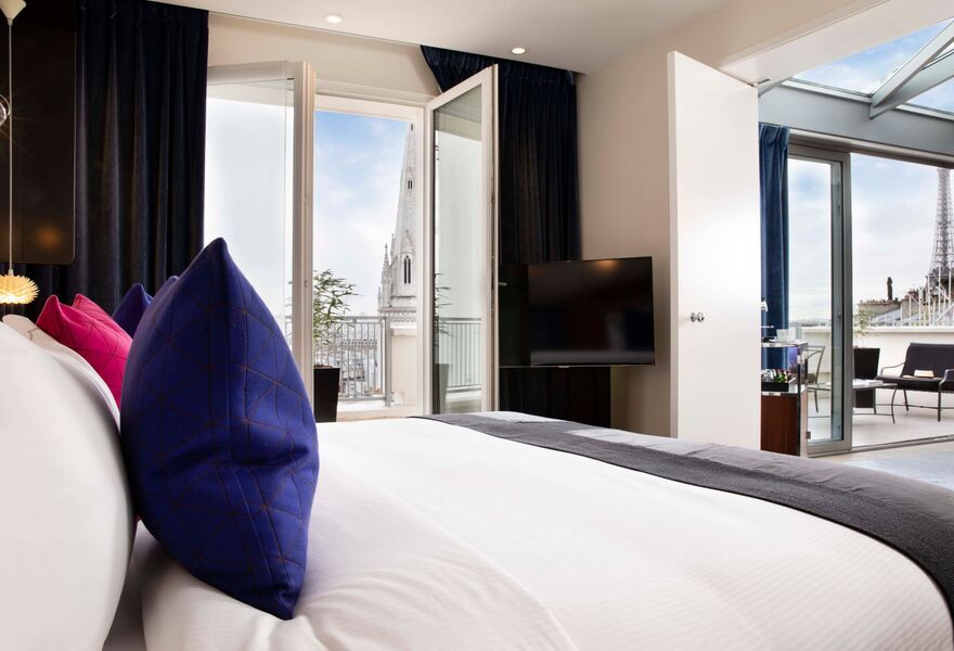 Une vue sur Paris est un bien précieux, notamment en raison de la beauté des constructions basses de la ville. Cela signifie que l'immeuble dans lequel vous vous trouvez risque fort d'être entouré de bâtiments de même hauteur, obstruant votre vue - heureusement que Paris offre tant de vues charmantes ! Mais si vous pouvez prendre un peu de hauteur et voir la ville s'étaler devant vous, ses grands monuments dépassant des maisons de ville, c'est vraiment quelque chose. C'est pourquoi nous sommes nombreux à rechercher les meilleurs hôtels de Paris avec balcon ou terrasse. Certains des hôtels recommandés dans notre liste des meilleurs hôtels de Paris avec balcon ont un prix assez élevé, mais qui en vaut probablement la peine si vous appréciez cet espace extérieur par-dessus tout ! Mais nous avons également trouvé de véritables trésors qui ne le sont pas. Et nous pensons vraiment que le fait d'avoir une vue à vous seul rendra votre visite spéciale.