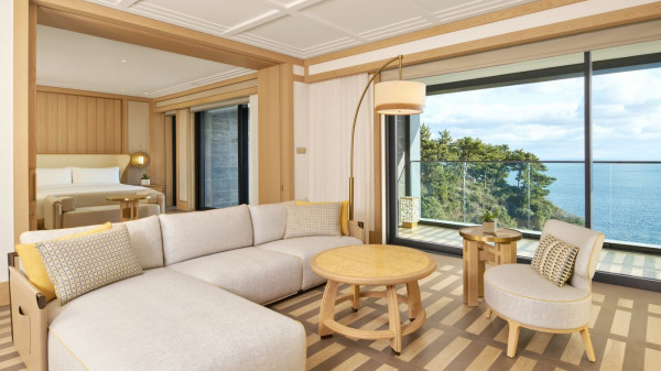 Inauguré en 2023, ce complexe spectaculaire épouse les falaises de l'île de Jeju, promettant un style cinq étoiles avec vue sur la mer de Chine orientale. L'élégante palette de Bill Bensley, composée de jaune canola et de gris basalte, reflète le paysage naturel de l'île. Un luxe rajeunissant vous attend, avec un superbe spa et une cuisine gastronomique.