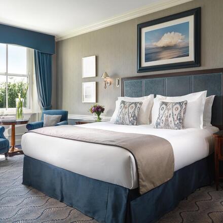 À mi-chemin entre la rivière Liffey et St Stephen's Green, et à quelques pas de deux musées nationaux, Buswells bénéficie d'un emplacement de choix. En effet, il se trouve dans une rue chic de maisons de ville géorgiennes qui abritent aujourd'hui les bureaux raffinés d'avocats et d'agents immobiliers haut de gamme. Il s'agit d'un ensemble de quatre maisons de ville, dont l'ambiance est traditionnelle, mais avec une touche de légèreté : sols en bois poli, papiers peints à motifs classiques, rideaux à volants et couleurs douces d'argent, de lilas et de citron pâle. Les chambres à coucher, réparties sur un réseau de paliers et d'escaliers, sont claires et épurées, dans des tons contemporains de gris avec des touches de citron vert dans les coussins et les jetés. Les meubles sont pratiques et sans chichis, tandis que les salles de bains sont lumineuses et modernes, même si elles sont petites. Choisissez des chambres au premier ou au deuxième étage pour des plafonds hauts et majestueux ; des chambres à l'arrière pour moins de bruit, mais pas de vue. Les repas du soir sont des classiques robustes de pub, tandis que le petit déjeuner "full Irish" vous préparera pour toute la journée.