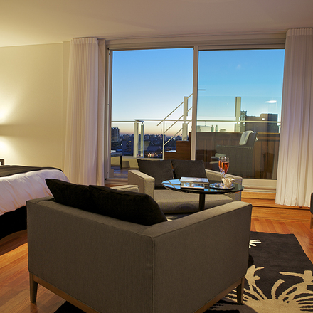 Le toit de 400 mètres carrés offre une vue imprenable sur la ville, un bar, un barbecue et des espaces de détente.Bar