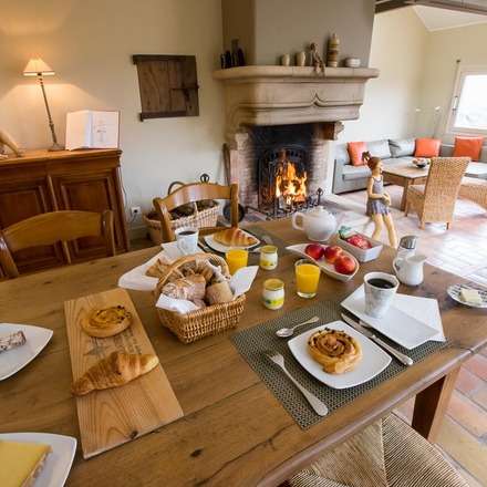 Quel type de petit-déjeuner proposez-vous ? Le petit déjeuner se prend souvent sur la terrasse ou dans le salon, il comprend : croissant et baguette frais, confiture et beurre, jus d'orange, yaourt, fruits, céréales, très bon fromage et jambon, café et thé.