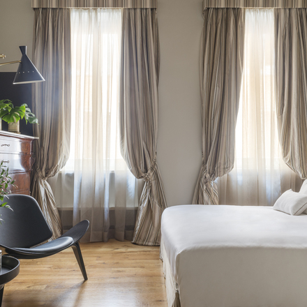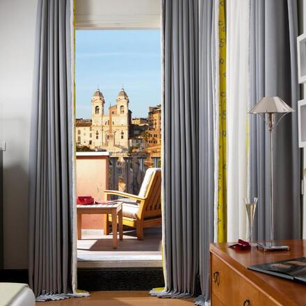 Perché au-dessus de la Via Condotti, la destination des boutiques de créateurs de la capitale italienne, propriété de la marque de mode Ferragamo, le Portrait Roma est petit mais parfaitement formé. Il ressemble davantage à la maison d'un ami fortuné qu'à un "véritable" hôtel. Le personnel en uniforme accueille les clients avec une tasse d'expresso avant de leur montrer leur chambre. Toutes les chambres sont immenses, avec des couleurs sobres de gris et de neutres, et plusieurs d'entre elles disposent d'un balcon ou d'une terrasse. Qu'il s'agisse d'un studio d'entrée de gamme ou de l'un des penthouses, l'attention portée aux détails est de tout premier ordre : du mobilier tactile aux draps de soie, en passant par une gamme éblouissante d'articles de toilette pour la salle de bains et des bocaux de snacks haut de gamme offerts. Bien que l'hôtel ne dispose que de peu d'équipements et d'un restaurant, la terrasse sur le toit compense largement ce manque. Le petit déjeuner buffet proposé ici est d'une qualité exceptionnelle. Il est composé de focaccia riches en huile d'olive et de fruits qui semblent tirés d'une des natures mortes exposées dans les galeries voisines.