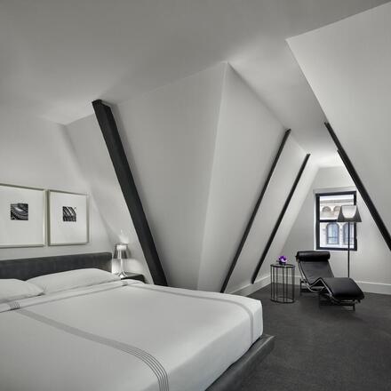 The Terrace and Outdoor Gardens met à l'honneur les ingrédients locaux et semble conçu pour des dîners pré-théâtre d'exception. Le Lobby Bar apaise avec des fauteuils en cuir blanchi sur mesure et des tapis en soie. En bas, le séduisant Paradise Club attire des DJs de classe mondiale et a la réputation d'accueillir des after-partys du Met Gala, probablement la réincarnation la plus proche aujourd'hui du Studio 54 de Schrager. C'est un témoignage de l'influence de Schrager d'avoir attiré la foule branchée aussi loin vers le nord, redéfinissant Times Square comme un endroit où les New-Yorkais pourraient réellement s'attarder.