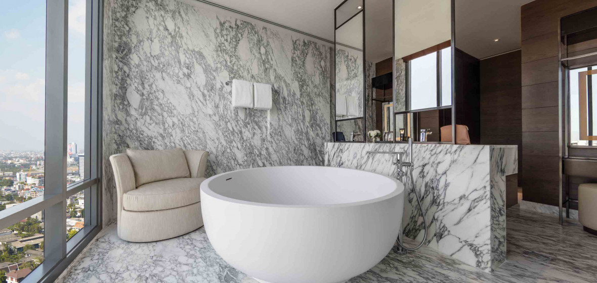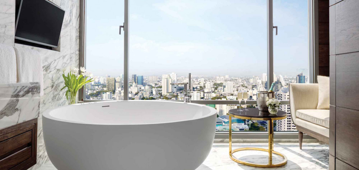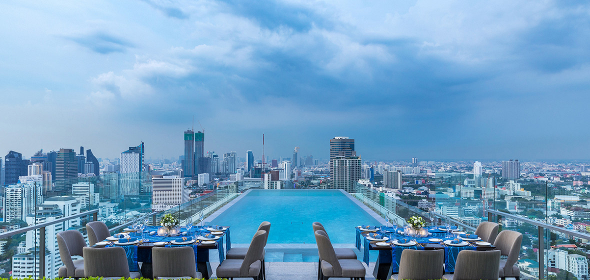 137 Pillars HSuites may be the new kid on the block, but it pulls no punches when it comes to world-class levels of luxury. Start on the ground floor at the glass-fronted Bangkok Trading Post cafe, which attracts a sleek clientele drawn to its lofty ceilings, colonial-inspired interior and all-day menu of fresh dishes. From there, shoot skyward to the genteel, guest-only lounge on the 26th floor, where complimentary afternoon tea and evening drinks are served daily, or head straight to your suite, where a bespoke white marble bathroom, standalone bathtub, and panoramic views await. Got a question? Your private butler is on hand to help. As the sun sets, slip on a swimsuit and head to the top floor for an evening paddle in the city’s highest rooftop infinity pool. Jutting out over the city’s skyscrapers, it’s an unforgettable vantage point from which to look out across Bangkok.