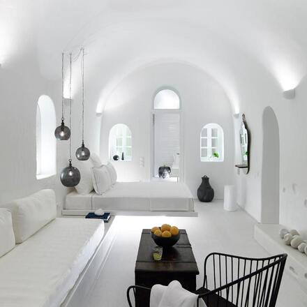 Il est difficile de trouver un hôtel qui ne tombe pas dans le stéréotype du chic de Santorin - mais celui-ci s'éloigne de la toile minimaliste bleu-blanc qui est généralement appliquée. C'est un petit hôtel charmant qui ne compte que quatre suites, dont trois avec des lits à baldaquin, des œuvres d'art sur les murs, du linge de maison, des meubles anciens, des fleurs fraîches, des jacuzzis privés et des vérandas. Il n'y a pas de piscine, mais vous êtes dans l'une des plus belles villes de Santorin (Oia) et les plages en contrebas sont simplement parfaites.