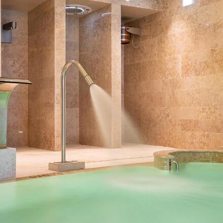 Es gibt einen beheizten Innenpool und einen Infinity-Pool im Freien.