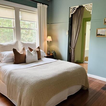 “Quatre suites de caractère se trouvent dans une réplique de moulin du XIXe siècle, dans la charmante ville d'Olinda. Les intérieurs décorés individuellement sont dotés de fauteuils sculptés, de textiles brodés, de cheminées crépitantes et de baignoires à remous. La plupart disposent d'une terrasse privée, d'une kitchenette et d'un salon. Un lieu de séjour charmant dans la chaîne des Dandenong Ranges.”