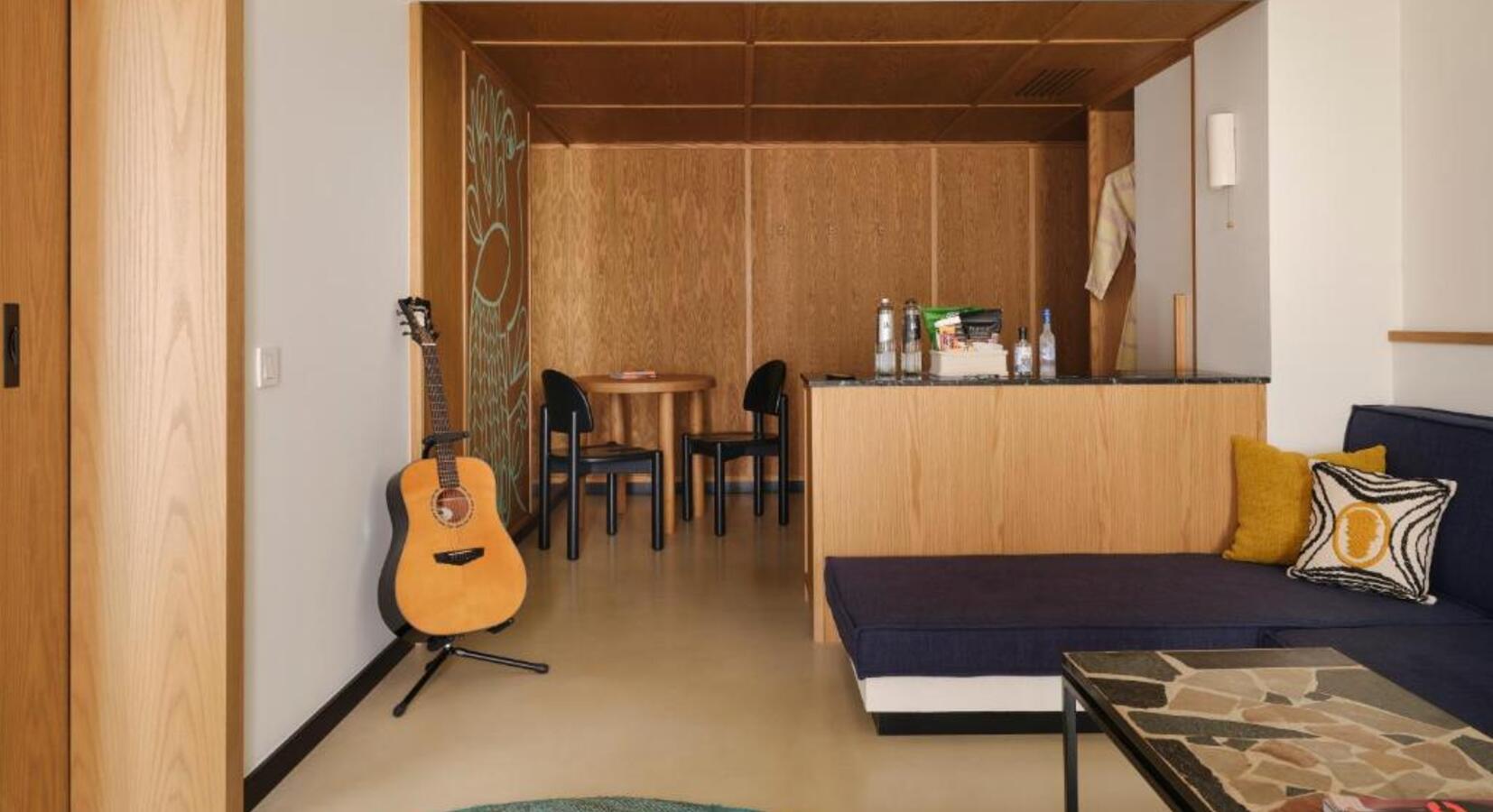 Die Lobby selbst ist ein einladender und komfortabler Raum, in dem man entweder bei einem Drink oder Kaffee mit Freunden entspannen oder sich zum Coworking zurückziehen kann. Kunstliebhaber werden die kuratierte Sammlung des Hotels zu schätzen wissen, in der Werke von Athener Künstlern zu sehen sind, darunter handgewebte Wandteppiche der Gebrüder Callas und Drucke des griechischen Volkskünstlers Alekos Fassianos, die alle dazu beitragen, eine tiefe Verbindung zur lokalen Kultur herzustellen.