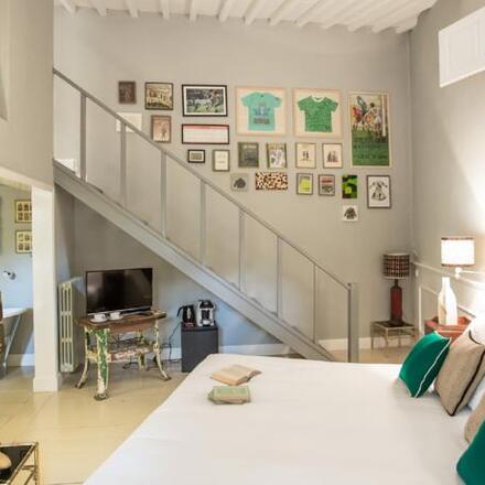 Sie sind zwar nur 10 Minuten von der berühmten Ponte Vecchio mit ihren unvermeidlichen Touristenströmen entfernt, aber sobald Sie die hohen Mauern dieses Gästehauses hinter sich gelassen haben, befinden Sie sich in einem fantastischen Garten mit uralten Bäumen und romantischen Lauben. Die Zimmer in diesem Palazzo aus dem 16. Jahrhundert bieten einen Blick auf den Giardino Torrigiani, den größten in Privatbesitz befindlichen Stadtgarten in Europa. Obwohl man sich im Garten nicht frei bewegen kann (außer nach vorheriger Absprache), befinden sich zwei der AdAstra-Zimmer unter der Gartenmauer (im ehemaligen Gärtnerhäuschen), während alle Gäste die spektakuläre und friedliche Aussicht von der Terrasse im ersten Stock genießen können. Das Gästehaus mit nur neun Zimmern befindet sich in einem Stockwerk des Familienhauses des Marchese Torrigiani aus dem 16. Jahrhundert. Jahrhundert. Die Zimmer haben ihre eleganten Proportionen bewahrt - mit Fresken bemalte Decken, geschnitzte Doppeltüren -, wurden aber auf witzige, kunstvolle Weise eingerichtet, mit einer Mischung aus Retro- und recycelten Möbeln. Alle Zimmer sind großzügig geschnitten und verfügen über kühne Bäder - vielleicht in schillerndem Schwarz-Weiß oder mit Hortensienblüten - und eine separate Badewanne im Schlafzimmer. Die Gartenzimmer bieten die meiste Privatsphäre; die Zimmer mit direktem Zugang zur Terrasse haben die beste Aussicht. An warmen Tagen frühstücken Sie auf der Terrasse, ansonsten im eleganten, mit Fresken geschmückten Salon. Das Frühstück ist reichhaltig, und es gibt den ganzen Tag über frisch zubereitetes Gebäck und heiße Getränke. Und eine Bar für Aperitifs am Abend. Das Personal ist superfreundlich und hilfsbereit; eine gute Wahl, wenn Sie einen ruhigeren, authentischeren Teil von Florenz erleben möchten.