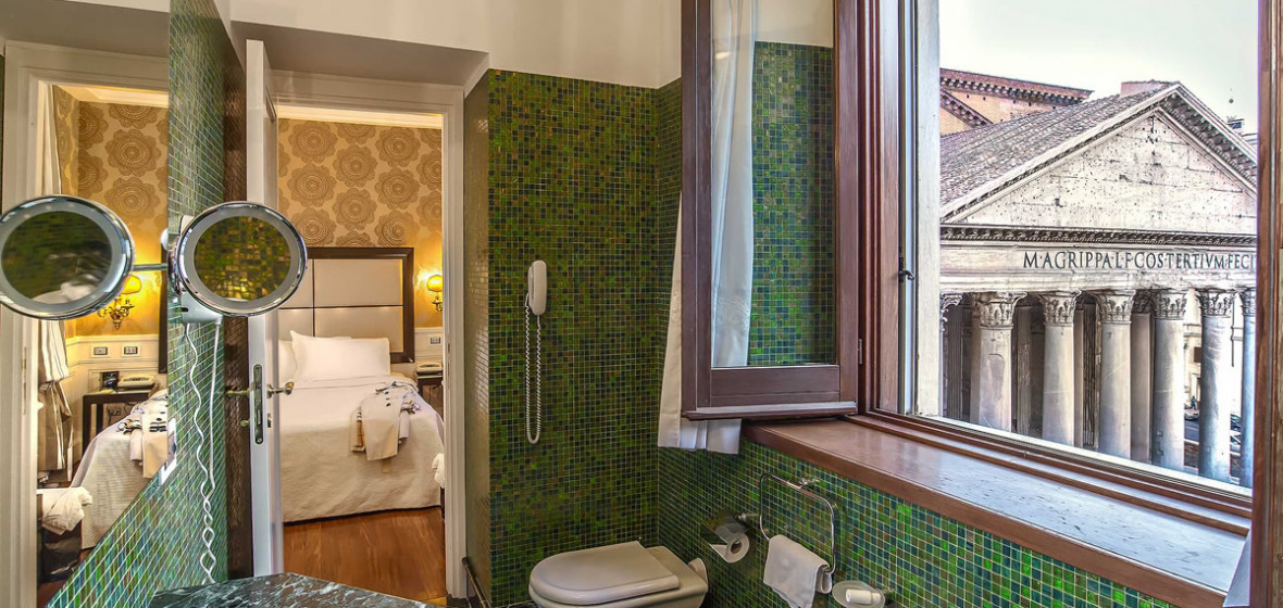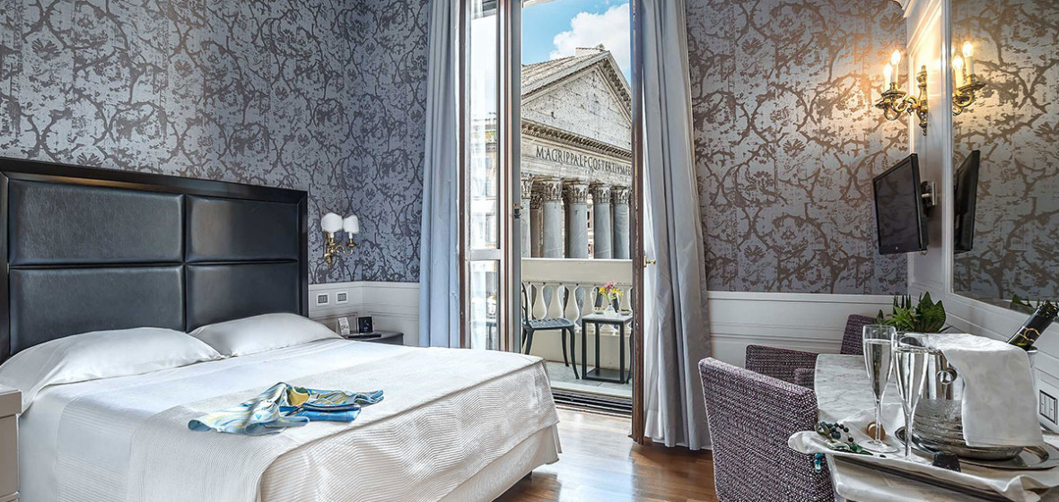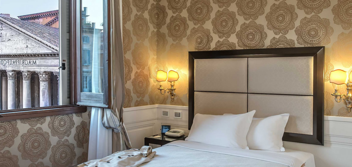 “Elegant rooms and suites, wonderful roof terrace bar, and walking distance to the Pantheon. Roman classicism and a traditional atmosphere throughout, from the dining room, to bedrooms, to terraces and dining room. An authentic and convenient choice for a family, group or couple.”