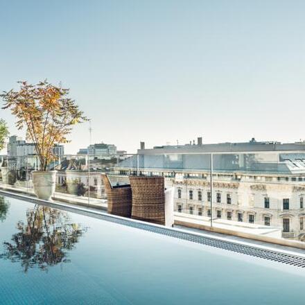 Formerly two separate 19th century palaces, this luxurious hotel delights in bringing the traditional face to face with the modern in a symphony of original features, stunning heritage rooms that are kept exactly as they were nearly 200 years ago, and modern art. There’s even an onsite chic new café complete with tattooed baristas and vegan cakes. The layout of the hotel is an interesting one, as the two palaces don’t meet. You can take the lift as far as the 7th floor, but if you’re staying on the 8th floor you have to switch lifts, creating a feeling of intrigue as you hop from one building to another. In the basement the spa is usually quiet and treatments are luxurious, while in the Austrian market inspired restaurant a three or five course set menu, or a la carte, is served at bench style tables or cosy booths at the bar.