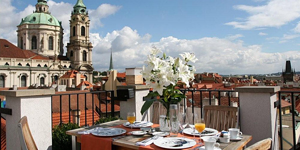 Rooftop terrace restaurant with great views serving Czech and International cuisine.Garden