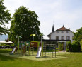Von der Hotelterrasse aus genießt man einen herrlichen Blick auf die Selève.Parken