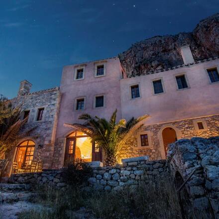 Installé dans un ensemble de bâtiments vénitiens historiques, cet hôtel a été le premier de l'ancienne ville fortifiée de Monemvasia (le Gibraltar grec), sur la côte est du Péloponnèse. Il a donné naissance à un certain nombre de rivaux, mais reste le meilleur. Les chambres sont dotées de sols en bois, de tapis en chiffon rayé, de coffres et de chaises antiques en bois ; la plupart d'entre elles disposent également d'un balcon offrant une vue éblouissante. Un petit déjeuner composé de miel, de noix, de riz au lait et de yaourt, de figues fraîches et de jus de fruits fraîchement pressés sur une véranda surplombant des murs en ruine et des toits de tuiles rouges, est proche du paradis. Ne vous attendez pas à la grandeur d'un hôtel, mais à un séjour tout à fait charmant. Comme il n'y a pas de piscine, le printemps et l'automne sont les meilleures périodes pour visiter l'hôtel.