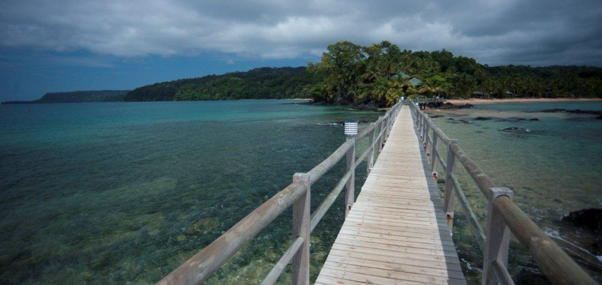 Das Bom Bom Island Resort vor der Nordküste der Insel Principe bietet 20 Bungalows, die alle entweder den Strand, den Garten oder den Pool überblicken. Das Hotel selbst liegt an zwei Privatstränden und die Bungalows sind modern eingerichtet, jeder mit einer eigenen Veranda und Aussicht. Die Einrichtung ist einfach, aber elegant. Über einen 230 Meter langen Holzsteg gelangen Sie zu einer weiteren kleinen Insel, auf der sich das Restaurant, die Bar und ein kleiner Yachthafen befinden. Ein großartiger Ort für einen Cocktail oder einfach nur ein Abendessen mit Blick auf die Insel! Für diejenigen, die nicht nur in der Sonne liegen wollen, organisiert das Hotel gerne Ausflüge zur Vogelbeobachtung, Waldwanderungen, Safaris mit dem Geländewagen, Schnorchelausflüge und vieles mehr, um die vulkanischen Küsten und das tropische Ökosystem in den atemberaubenden Regenwäldern und historischen Plantagen zu erkunden.