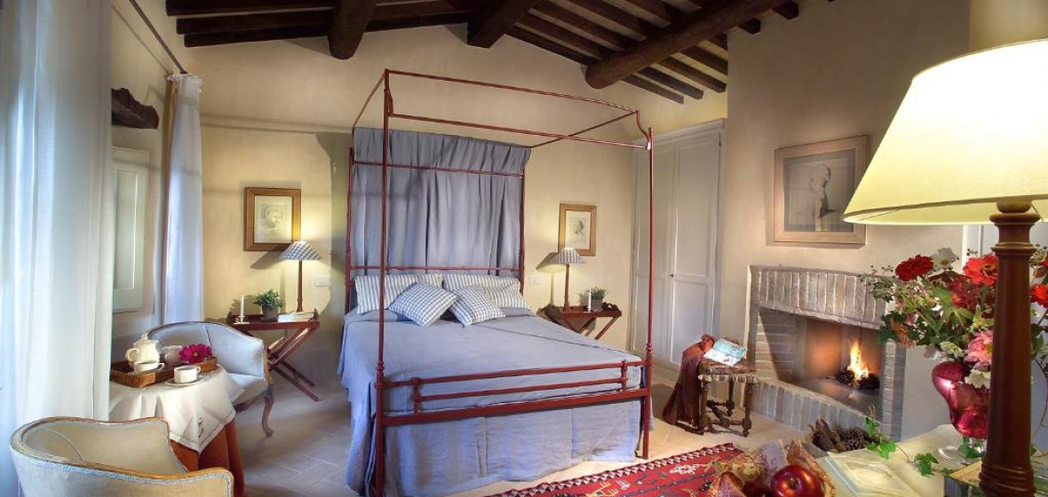 Borgo della Marmotta is a cluster of restored farm buildings set in the Umbrian countryside, with 11 bedrooms and 7 suites/apartments, some of which have small kitchens. Rooms are spacious and furnished with oversized Italian country pieces, and plenty of original features included beamed ceilings and exposed stone walls. Inside the main building the rustic Italian theme continues. There's a large sitting room with a huge open fireplace and a couple of vast sofas covered in faded linens set around it and French doors lead to a small paved terrace overlooking the gardens. Plus there's an honesty bar and coffee station set up in a corner for helping yourself. The gardens are well-kept and overflowing with scented blooms during the summer, and throughout you'll find chairs are arranged in groups of two or three, under trees and in shady corners.. There’s a magical restaurant with indoor and outdoor dining where you can indulge in a buffet breakfast with a fabulous selection of pastries, breads, yoghurts, fruits, meats and cheeses. The restaurant also offers a light lunch (you need to pre-book) with a short menu that changes daily and a more sophisticated supper with a wider menu to choose from (such as homemade pasta with a ragu sauce, or slices of beefsteak with seasonal greens sautéed in garlic). Everything they produce is fresh and delicious. The wine list has local wines (very drinkable) plus choices from further afield. Staff at Borgo del Marmotta are friendly and discreet.