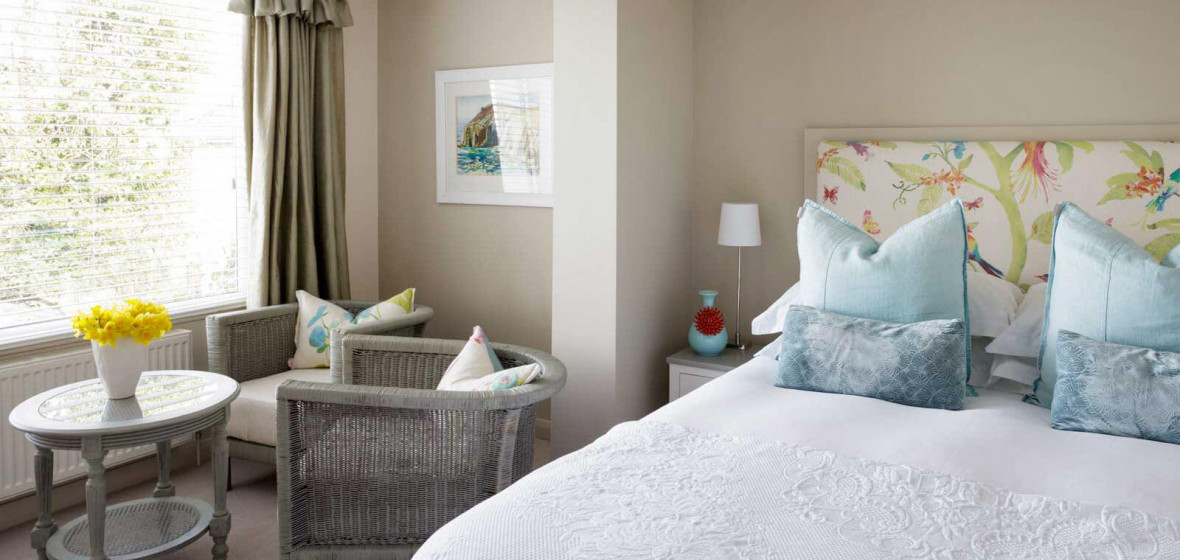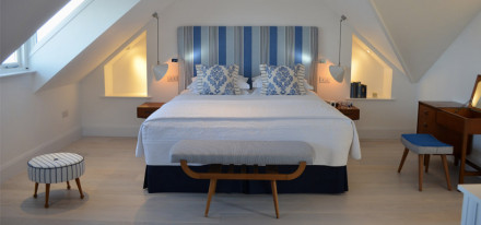 An interior of stylish creams and pastels reflects the tranquillity of the spectacular panoramic views from this small, recently refurbished hotel and lends it a casual sophistication. Owners Jonathan and Marianne Bassett have created a Cornish seaside feel with white shutters, wooden floors and wicker chairs whilst also managing to inject more than just a hint of the Mediterranean. Wander down to Carbis Bay below; take the three minute train from around the corner into town; relax with a glass of wine on the terrace and glimpse the lighthouse that inspired Virginia Woolf.