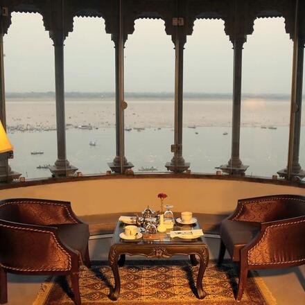 "A 200-year-old castle on one of the city’s ghats is now a luxury hotel—here’s an exclusive peek at BrijRama Palace."