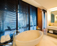 "nice touches such as black Zimbabwe marble in the bathrooms, over-sized Bulgari toiletries, drapes from Enzo degli Angiuoni, and state-of-the-art high-tech features."