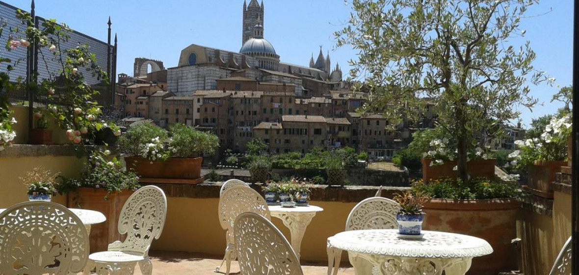 Warum übernachten die Leute gerne in Ihrem Hotel? Die Leute lieben es, in unserem Hotel zu übernachten, und zwar aus 3 Hauptgründen. Erstens sind wir eines der wenigen, wenn nicht sogar das einzige, historische Boutique-Hotel im Zentrum von Siena. Das gibt unseren Gästen die Möglichkeit, die Geschichte und den Zauber von Siena, das selbst zum Weltkulturerbe gehört, zu erleben. Zweitens bieten wir allen unseren Gästen schlichte Eleganz und persönlichen Service. Jedes unserer Zimmer ist in einem anderen Dekor und mit antiken Möbeln eingerichtet. Unser Frühstücksbuffet ist reichhaltig und bietet lokale Spezialitäten sowie frisches Obst, Brot und Gebäck, das täglich geliefert wird. Wir freuen uns, unsere Gäste persönlich kennenzulernen und mit ihnen zu sprechen und auf ihre besonderen Wünsche einzugehen. Alle Gäste erhalten bei ihrer Ankunft ein Begrüßungsgetränk. Das ist Teil des Charmes, den ein kleines Hotel wie das unsere dem Rest voraus hat. Drittens: Unser Salon und unsere Terrasse sind einfach spektakulär und werden von allen, die uns besuchen, sehr geschätzt. Von unserer privaten Terrasse aus haben unsere Gäste einen weiten Blick auf den Dom von Siena aus dem 14. Jahrhundert und die umliegende Stadt. Unsere Gäste bringen oft ein leichtes Mittagessen oder eine Flasche Wein mit, die sie dann auf unserer Terrasse genießen können - eine Praxis, die wir unterstützen.