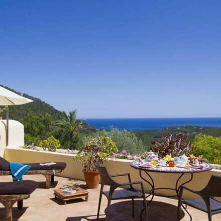 "It affords spellbinding views from its hilltop position near the village of Sant Carlos in the north of the island, high above the bays of Cala Mastella and Cala Llenya."