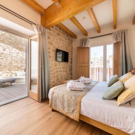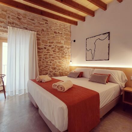 Inside the sturdy ramparts of the medieval town of Alcudia, Can Tem can be found a few strides from Sant Jaume church. With traffic restricted to outside the city walls, it's an extremely quiet spot but for the occasional toll of church bells. Guests are given free rein to come and go as they wish. Six rooms are simply decorated with traditional trunks and wardrobes mixed with retro lighting and contemporary art. Antique wooden beds - each 1.80 x 2m, have notably comfortable mattresses, pillows and soft cotton sheets. Bathrooms are spacious and modern. Originally the family home of Toni & Magdelena, the couple converted the C17th manor house into a small hotel 15 years ago after their sons moved out, and now run it as a business. The feel is low key and informal. Continental buffet breakfast includes local speciality emsiamada and is served in the dining room or shady courtyard.