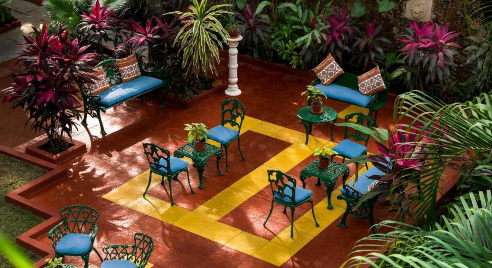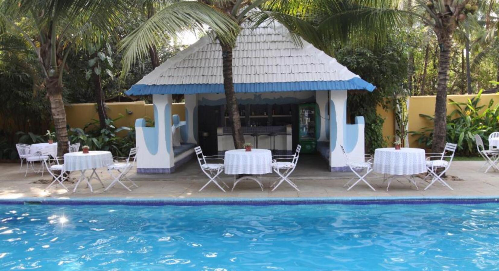 Deux espaces de restauration — l'un couvert et l'autre au bord de la piscine — offrent une cuisine goanaise exquise avec des légumes du marché et des fruits de mer fraîchement pêchésJardin