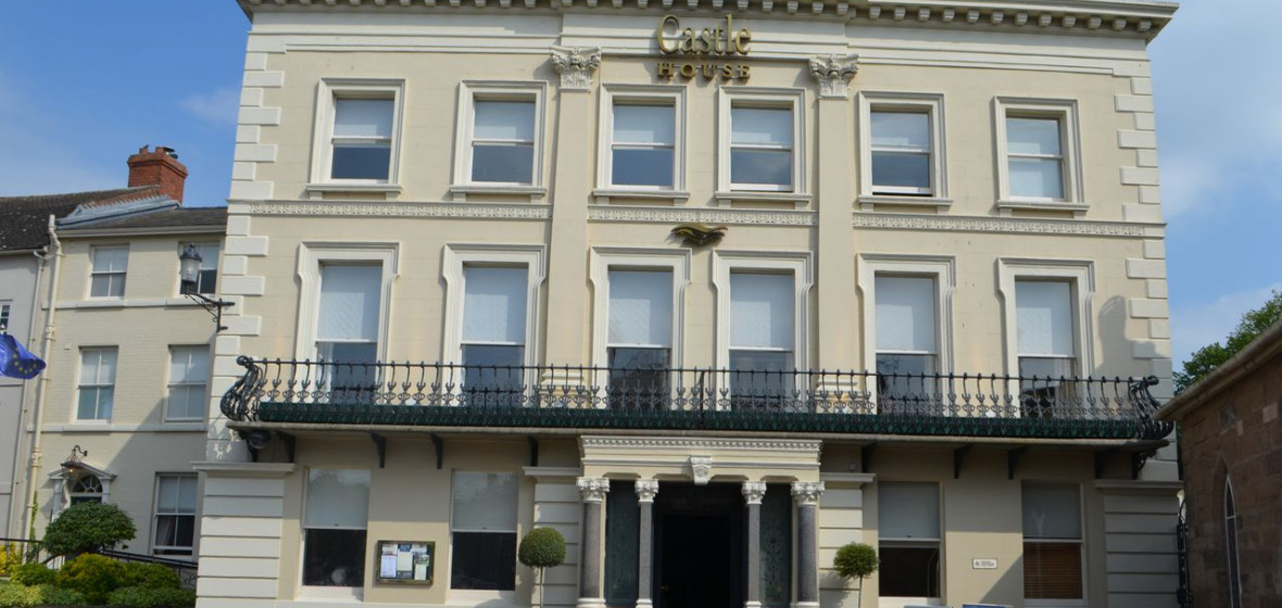 Juste à côté des douves d'origine du château de Hereford.Suites