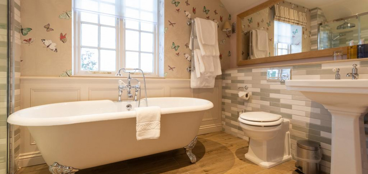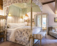 Bedrooms, too, are generously hung with art, and are a mix of traditional country house charm – vintage wallpapers, comfortable armchairs and solid bathrooms – with breezy colours, blanket throws and jazzy lampshades. Thoughtful touches include piles of paperbacks and handsome packets of Chatsworth Farm biscuits. Be aware, the four-poster beds are very high; a set of small steps is discreetly placed to help access.