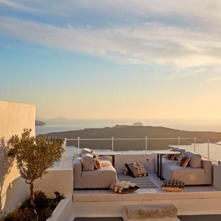 Nestled on the edge of the caldera in Fira, Santorini, Cosmopolitan Suites is a haven for romantics seeking luxury and breathtaking views.