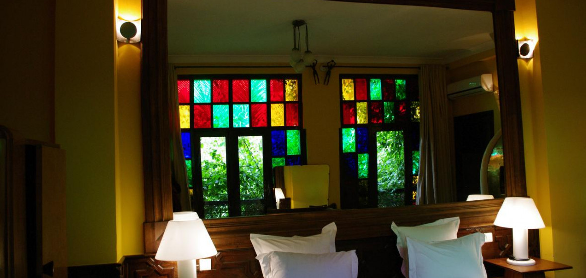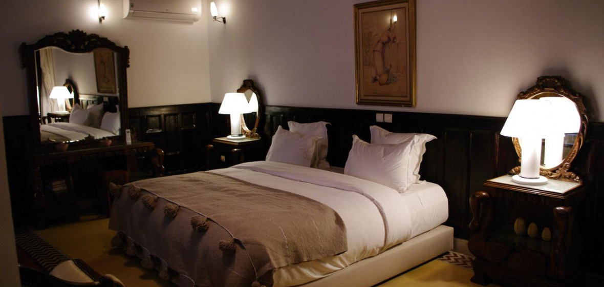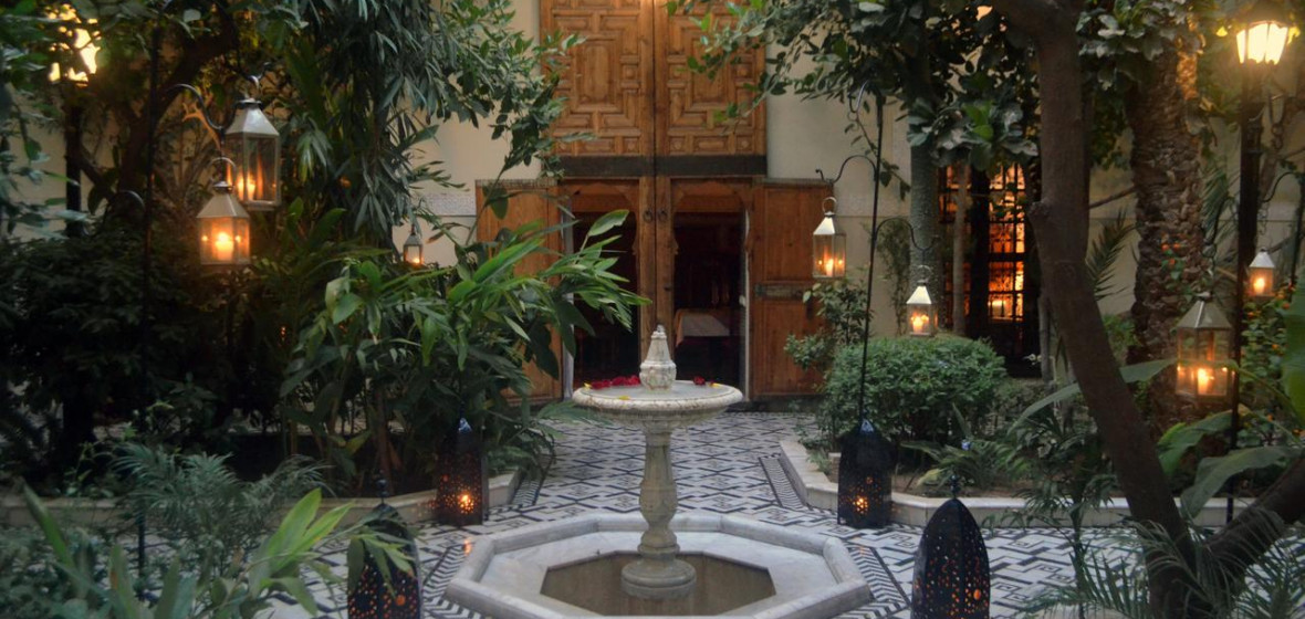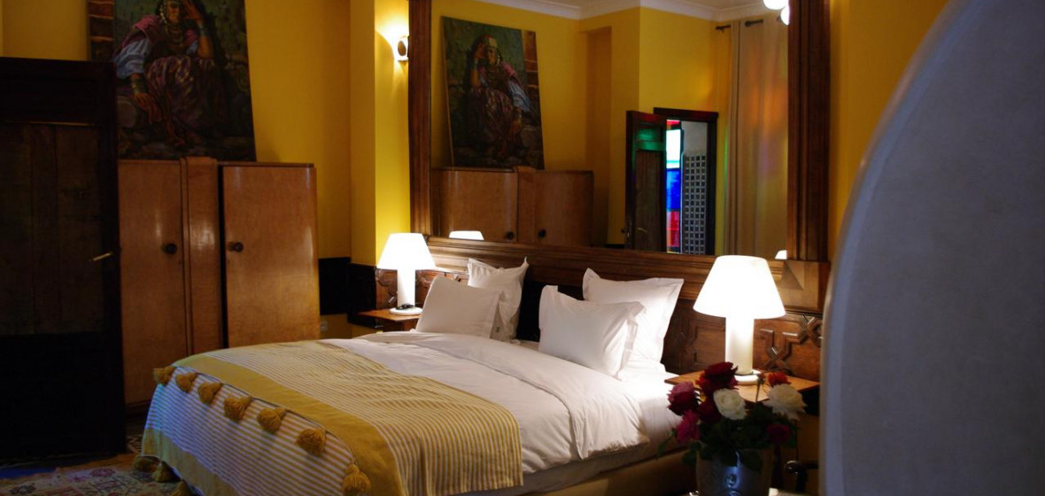 Once a grand 1930s home, this authentic Moroccan-owned riad resides in a prominent location and remains somewhat unchanged by time. Fine Art Deco details - sculpted lights, stained glass windows, black and white checkered floors and moulded wooden panelling and furniture are still very much in evidence.