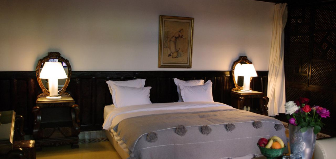 Les lits sont grands et confortables avec des oreillers moelleux (ce qui est inhabituel au Maroc) et les chambres donnent une impression de cocooning malgré la hauteur des plafonds, car les murs laqués sont épais et solides. Les salles de bains sont recouvertes de carrelage noir et blanc et certaines disposent d'une baignoire, ce qui est appréciable après une journée passée à arpenter le souk.