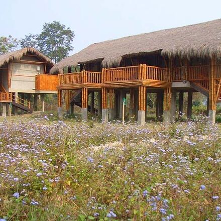 Unlike the flashy chain establishments, there’s no signpost for Diphlu River Lodge. Instead, two discreet words on the gate read, ‘Private Property’, so at once, you know you’re in for something really exclusive. Four of the 12 stilted cottages are on the riverbank, overlooking Kaziranga, and the other eight encircle a meadow – which, depending on the season, is either a carpet of mustard flowers or a shimmering paddy-field. Their ethnic-chic design – thatched roofs, mud-coloured walls, bamboo beams, wicker furniture, hand-woven wall hangings – echoes the homes of the Mising tribe; and French windows make the most of fabulous views, allowing the sunlight to pour in from private balconies. Every detail has been considered: the pots of Assamese tea, torches by the beds and a plate of biscuits for post-safari munchies. Manager, Ranesh Roy, is a fountain of knowledge and amusing anecdotes. He’s also passionate about the resort’s eco philosophy, so you’ll receive a letter on how to reduce light and noise pollution. Drinks and meals are served in The Machan, which has traditional Naga hats on its walls and old-fashioned deckchairs, from where you can observe one-horned rhinos across the river.