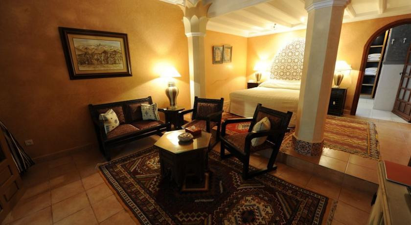 “Traditional hotel in the foothills of the Atlas mountains. Large, unpretentious bedrooms with traditional Moroccan features set scattered through exotic gardens. Lovely swimming pool and seasonal cooking. A spa and hammam to completely unwind in. Ideal for nature lovers.”