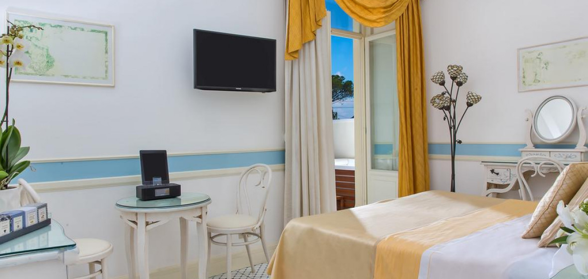 "An eco-friendly boutique hotel set in a Liberty-style villa between Marina Grande and Capri, with 11 rooms and an attractive rooftop terrace offering lovely views. The hotel’s electric car zips passengers to the beaches and Capri town."